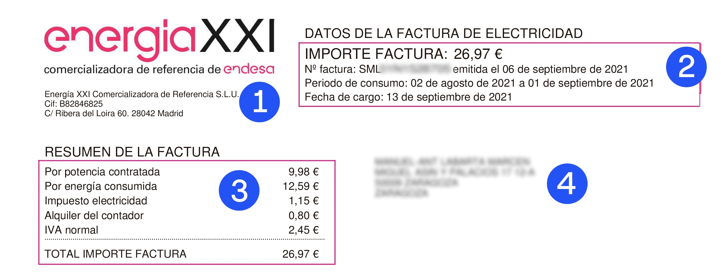 Toda la información referente a tu comercializadora de luz del mercado regulado: el logotipo de la empresa y el nombre, entre otros datos.