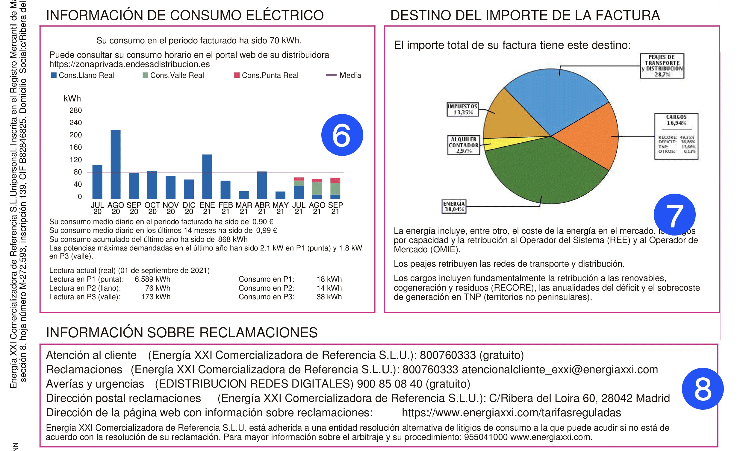 Este párrafo contiene información muy importante, como por ejemplo, las señas o el teléfono para presentar una reclamación en tu comercializadora.